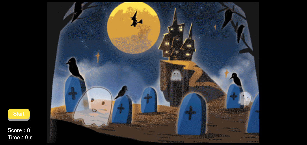 jQuery 小遊戲,剛好遇上萬聖節,遊戲會隨機出現小鬼,抓到會變成白煙,即加分。